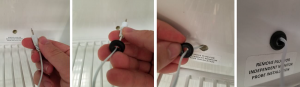 1.打開門,從設備前面開始。在里面,在后壁上,從裝置內部取下白色中心蓋和黑色 O 形圈墊圈,然后從裝置外部(背面)取下它們。不要扔掉黑色 O 形圈墊圈,因為稍后您將需要它們。